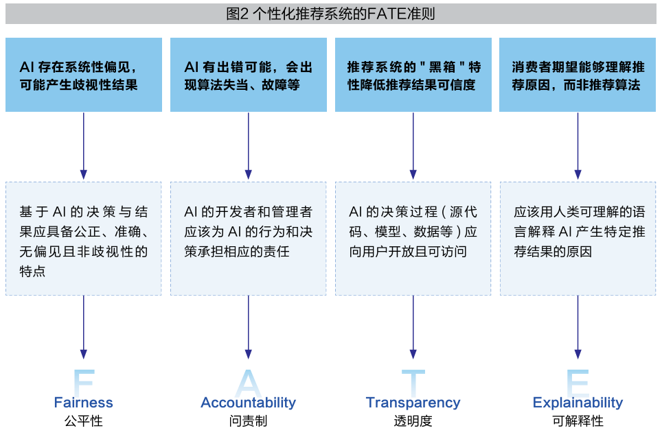 FATE准则为企业设计、开发与应用符合伦理规范的推荐系统提供具有实操性的指导框架,使企业得以在技术效能与用户信任之间实现良性互动。