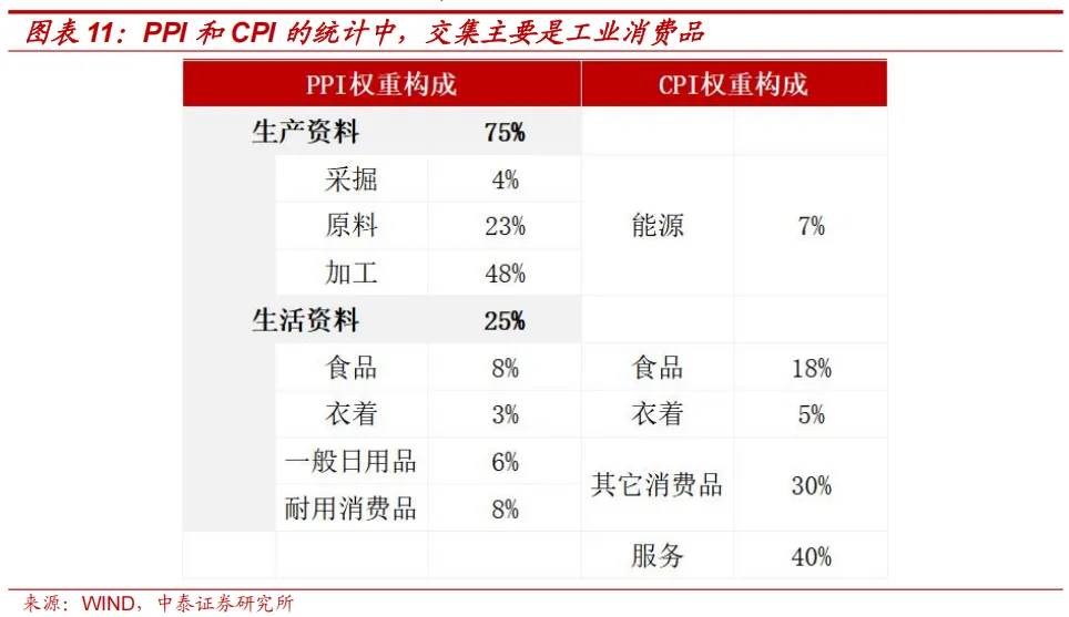 除了终端需求外,从统计角度看,PPI与CPI的结构错配,也会影响到国际大宗商品涨价向CPI的传导幅度。