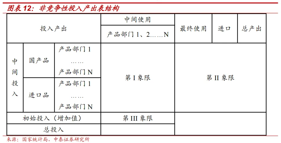 投入产出表又可以分为竞争性与非竞争性两种,竞争性投入产出表不区分本国产品与进口品,视为完全替代,一般用于封闭经济分析;非竞争性投入产出表对两者区分,更适用于开放经济分析。