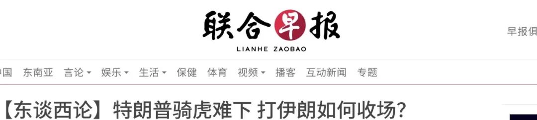 *原文于3月18日发布于新加坡《联合早报》播客,原标题为“【东谈西论】特朗普骑虎难下打伊朗如何收场?”,文稿内容已经王江雨教授审阅并授权发布。
