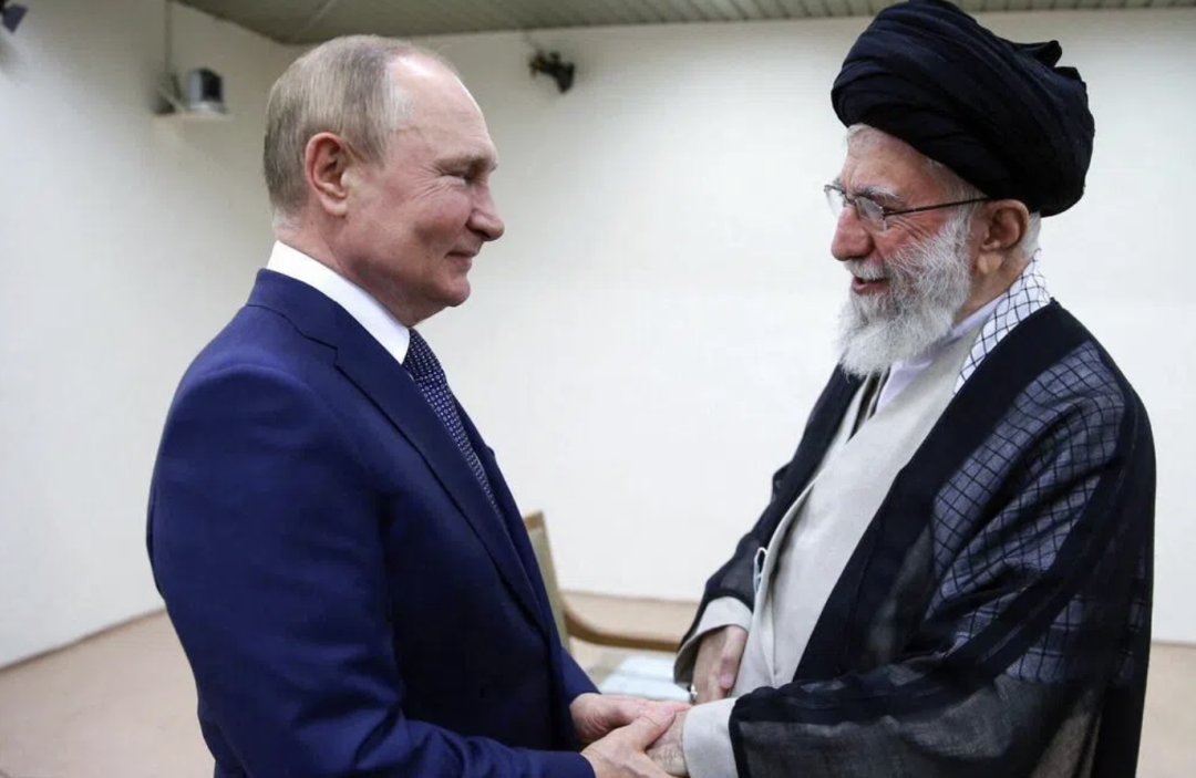 俄伊两国签署了战略伙伴关系协议,但其中不包含共同防御条款。图为2022年7月19日,俄罗斯总统普京在德黑兰与时任伊朗最高领袖哈梅内伊(右)会晤。图源:法新社
