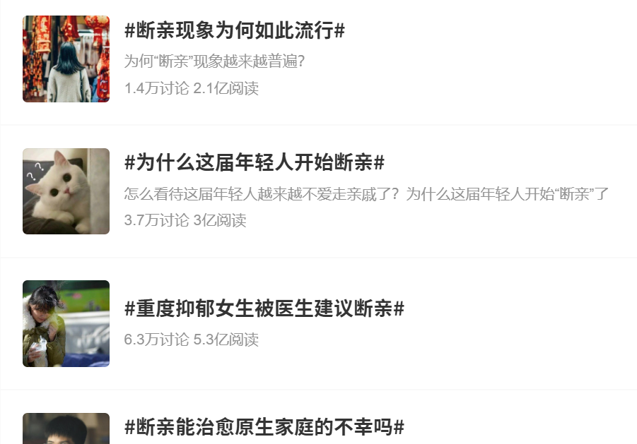 就比如网上现在流行的「断亲」话题中大家讨论的那样。