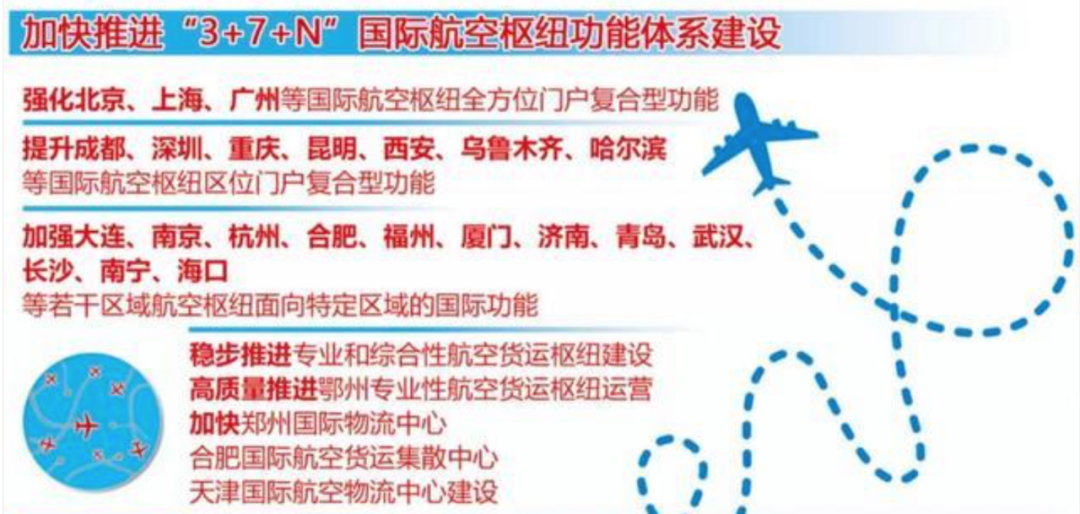 2024年8月,国家民航局与国家发改委联合发文,提出加快建设“3+7+N”国际航空枢纽功能体系。