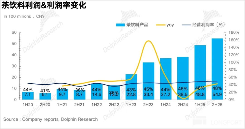 2、茶饮成为公司第一大增长引擎:2H25茶饮业务实现营收115亿元,同比增长38.4%,收入规模正式超越包装水,成为公司的第一大增长引擎。