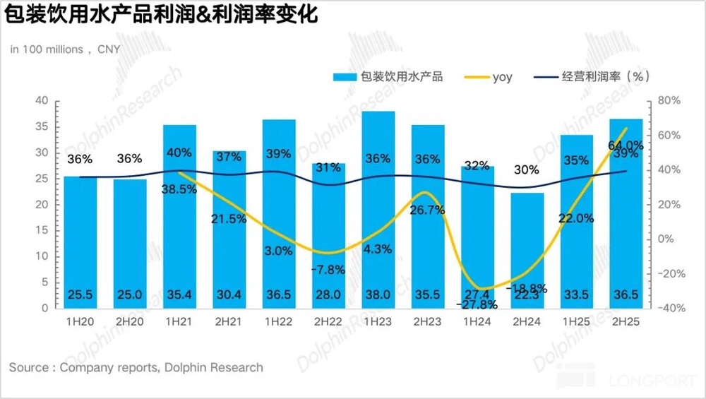 1、包装水盈利能力创新高:2H25包装水业务实现营收92.7亿元,同比增长25%,在上半年恢复正增长后环比进一步提速。
