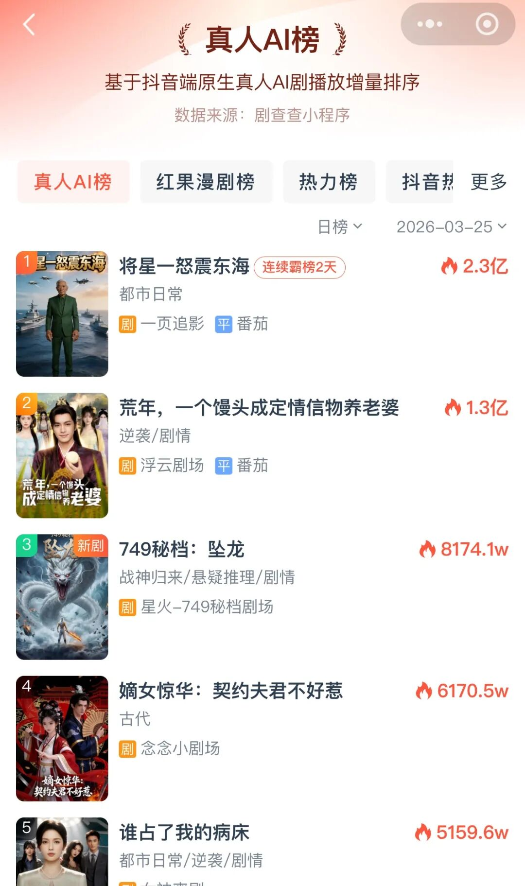 据DataEye数据,2025年1月上榜的AI真人短剧仅4部,10月增至69部,11月直接达到217部,较年初增长超50倍。在抖音平台,《奶团太后宫心计》《九尾狐男妖爱上我》等AI短剧播放量均在2亿以上。DataEye、剧查查联合统计测算,2025年AI真人短剧市场规模已明确突破120亿元,同比增长超300%。
