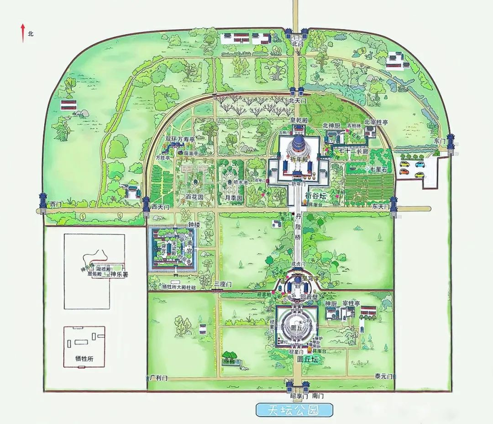 圜丘坛的台面、栏杆均采用同心圆设计,石材的反射系数经过天然校准,可实现声波共振13次叠加,形成清晰的回音效果。