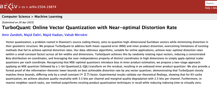 不止是这篇引发血案的论文都不是今天新的成果——TurboQuant论文最早于2025年4月28日上传到arXiv(编号arXiv:2504.19874),至今已经11个月。这期间,无人谈论。