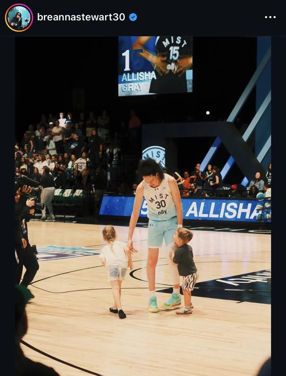 对,就是那个曾经短暂加入上海女篮,在WCBA打零工大杀四方赚外块养家糊口的总决赛MVP,就是那个经常牵着儿子和女儿出现在赛场上,从康涅狄格大学一路打到女子篮球最高领奖台的球队大姐大。