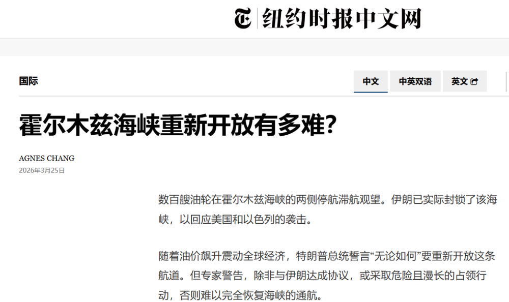 在这个世界上,总有一些地理咽喉,哪怕你拥有十个核潜艇舰队,也不得不在面对大自然的鬼斧神工时低头。今天,纽约时报发了一篇名为《霍尔木兹海峡重新开放有多难?》的文章。这篇表面上给美国政府找台阶下的报道,实际上是一篇五角大楼将领们在战术地图前绝望的自白书。