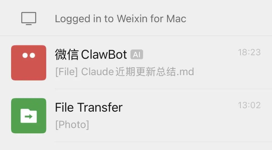 一开始,开放度高的Telegram和飞书是普遍推荐的对话入口。3月22日,微信也全面开放入口,在文件传输助手上方从此多了一个红色的微信Bot(可改名)。