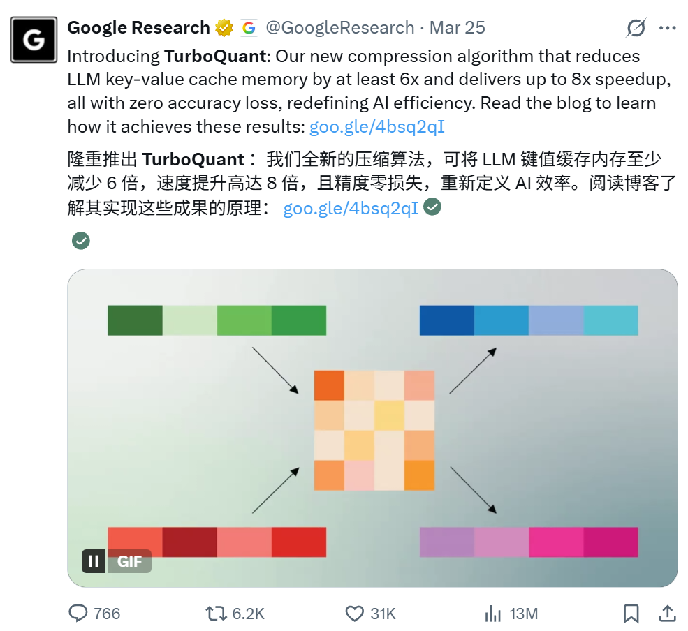 那么,TurboQuant究竟有何等玄妙?为何发布一年之后还能引发如此巨大的轰动和市场震荡?