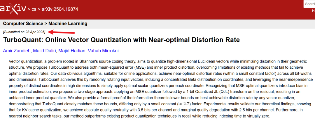 而这一轮内存股暴跌的诱因,却只是谷歌发布的一篇新博客。这篇博客介绍了谷歌一年前就已经在arXiv上公布的一项技术:TurboQuant。