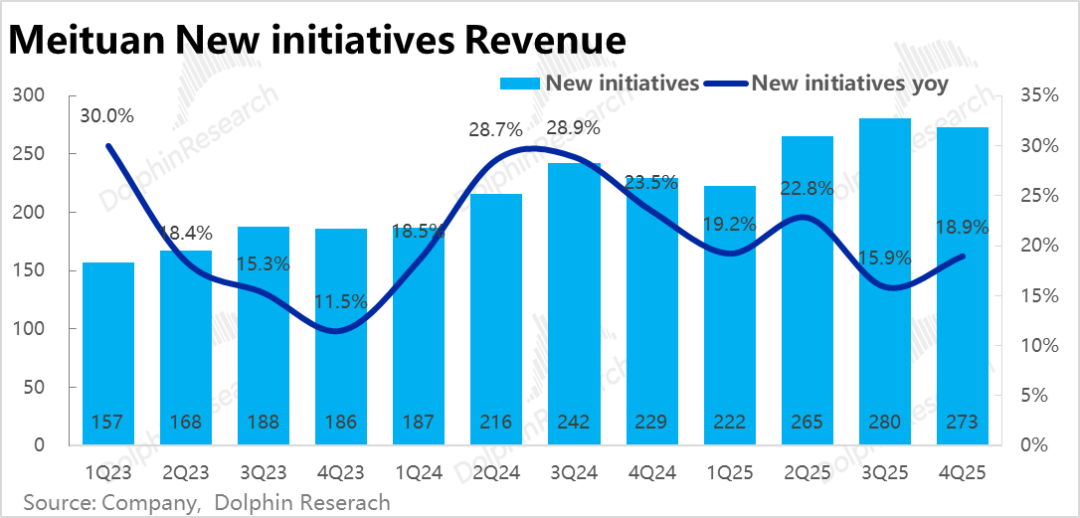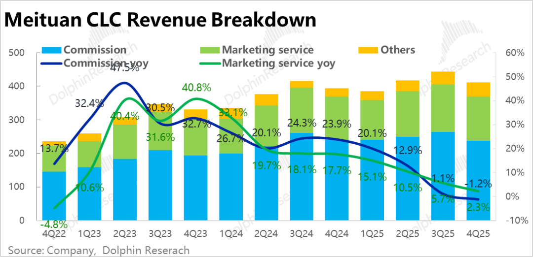 不同于配送收入增长的触底修复,本地商业的佣金和广告本季的收入增速却在继续恶化,佣金收入转为下滑1.2%,广告收入的增速也从上季的5.7%明显下降到2.3%。考虑到本季到家业务(外卖+闪购)对增速的负面拖累应当是有所缓解的,可见是美团到店业务增长进一步放缓的拖累。