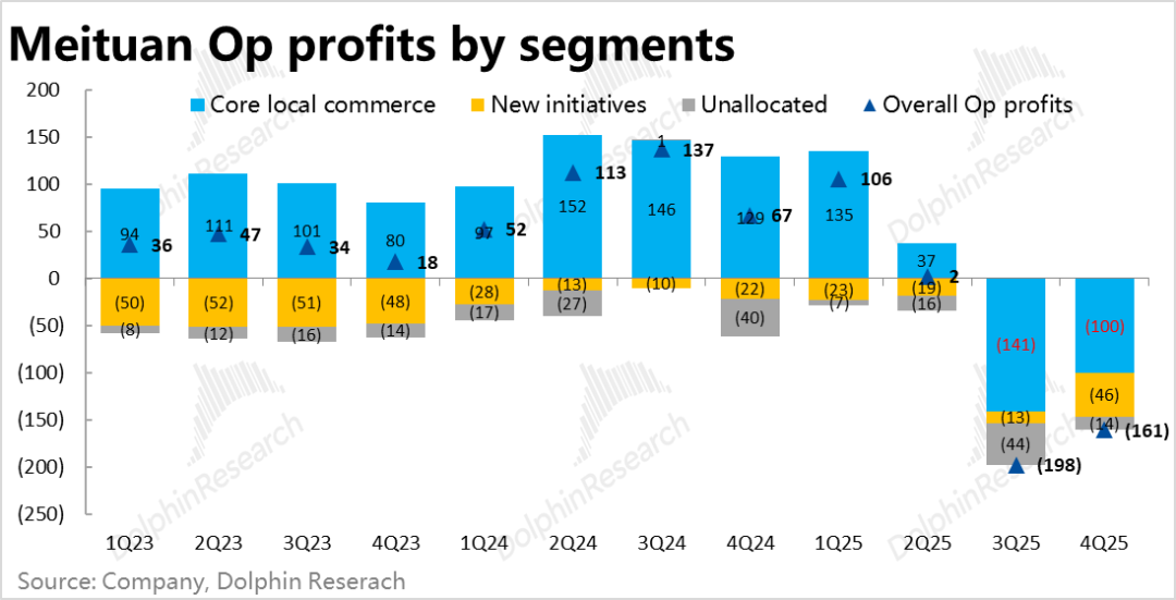 但是,本季新业务的亏损超预期走高、到达46亿,明显高于市场预期的35亿,环比上季也多亏了约34亿。因此,核心本地商业减亏的大部分是又被新业务再亏了出去。