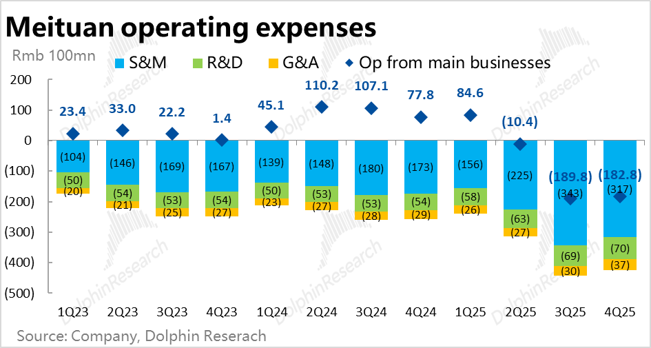 本季毛利率仅为26.2%,在外卖(配送)补贴影响收窄的情况下,依然环比下滑了约0.2pct,当然也有冬季的季节性影响。导致毛利润同比下降近28%,跌幅还是比较高,明显不及市场预期。