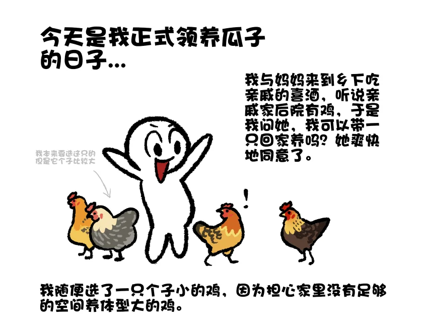 或许,和博主@毛桃桃大眼袋一样,本来是把鸡当做食材储备的,却没想到饲养过程中渐渐生出了感情,于是让它逃离了餐桌,成为家养宠物;
