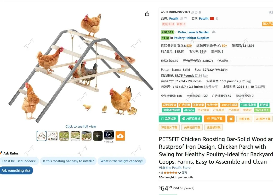如果说这份两年前的调查放在今天来看或许欠缺一定的参考价值。那近些年,亚马逊上如鸡爬架、鸡的“背带裤”等层出不穷的养鸡单品,应该能从另一个维度印证这一点。