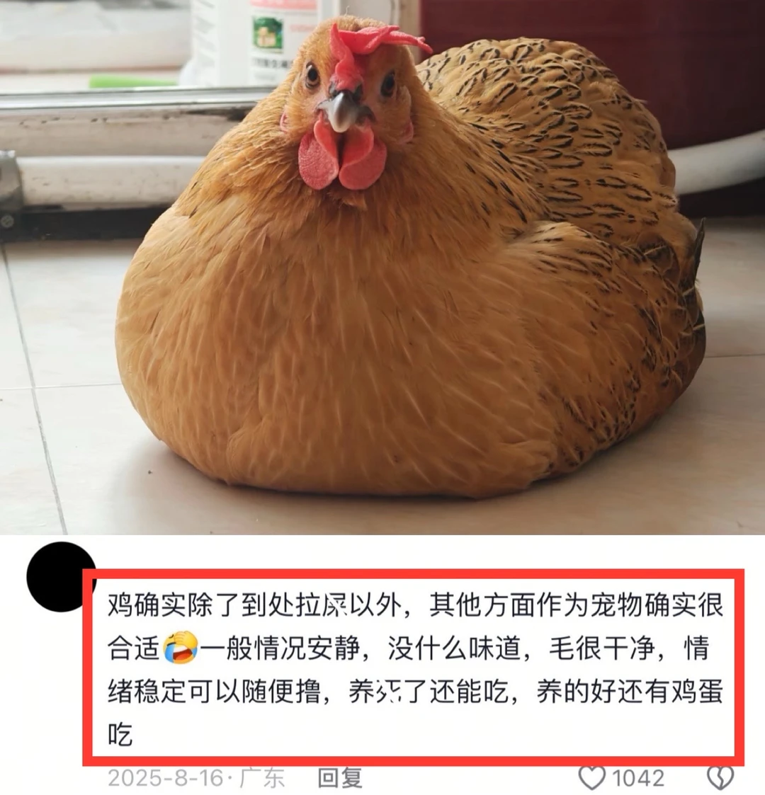 况且,如果养的是母鸡,它还会在心情好的时候给下两个蛋当租金,补贴补贴家用,属于经济适用性拉满了。