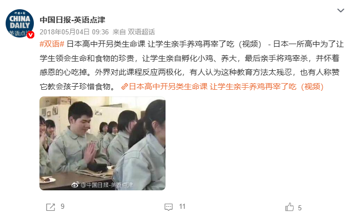 几年前有个日本高中让学生养鸡养大之后再要求杀了吃的新闻挺有争议的
