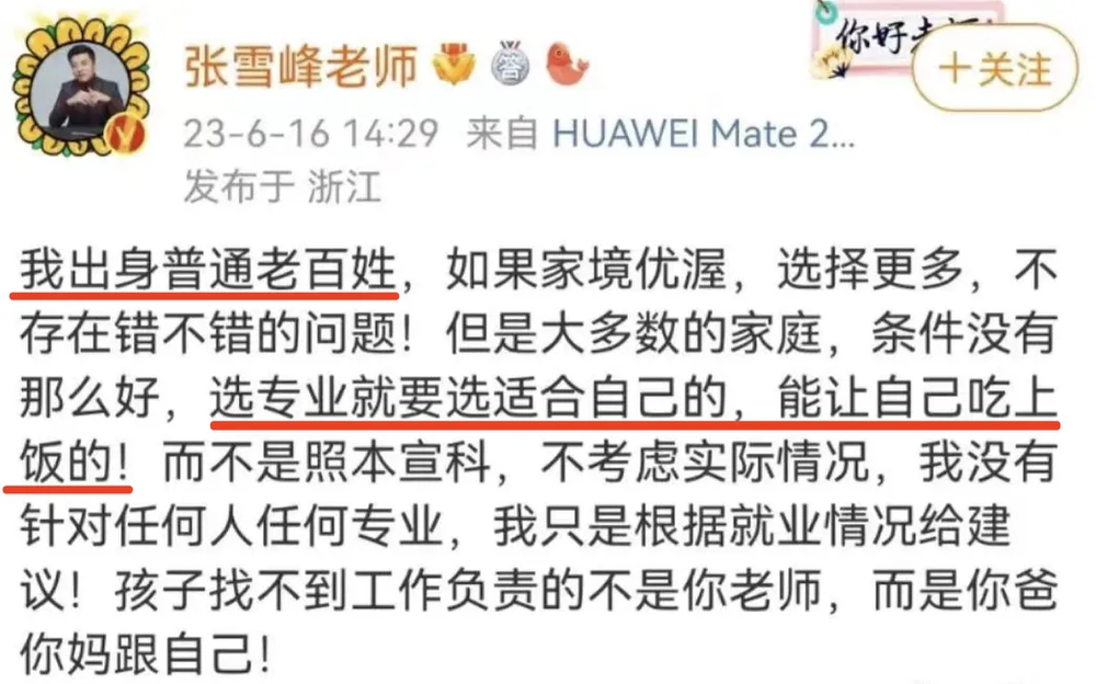 但在张雪峰这则截然不同了。