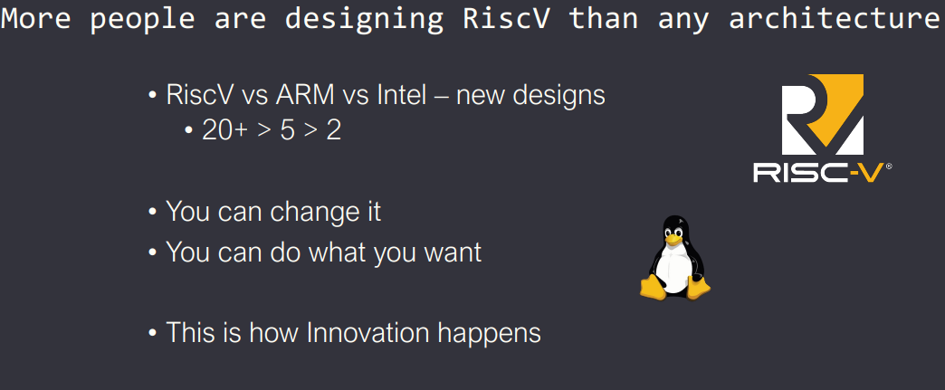 ①RISC-V是创新的基础设施:开放、可修改、无IP壁垒,这是"创新发生的方式"。