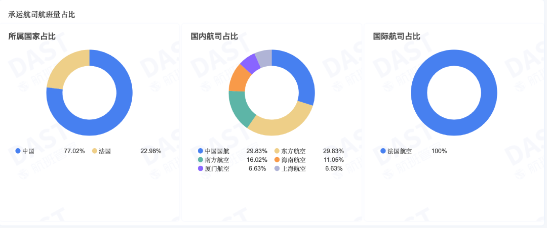 根据航班管家最新数据,中方航司在中法航线的航班量占比已达到77.02%,法航仅为22.98%。