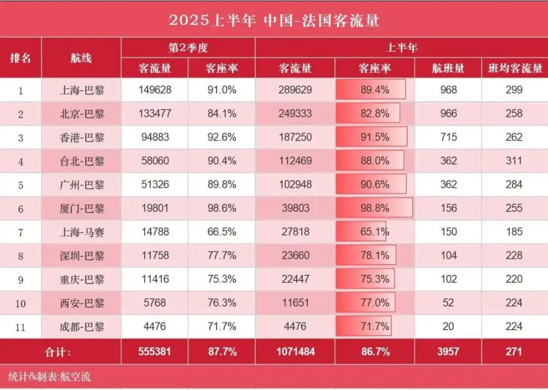 巴黎仍然是绝对枢纽。但随着中国一线与核心二线城市流量持续涌入,其承载能力正在逼近上限。