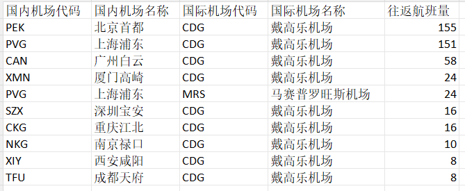 过去很长一段时间,巴黎戴高乐机场几乎承接了全部中法航空连接。北上广与巴黎之间的高频航班,构成了整个市场的基本盘。