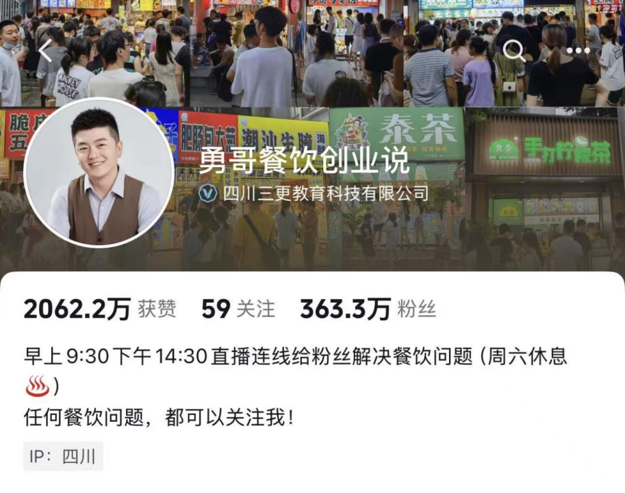 在餐饮行业深耕十多年的勇哥投身自媒体时,原本大概只想讲讲干货、通过知识付费变现,但直播一开后,勇哥直播间直接成了中文互联网最生猛的创业真人秀: