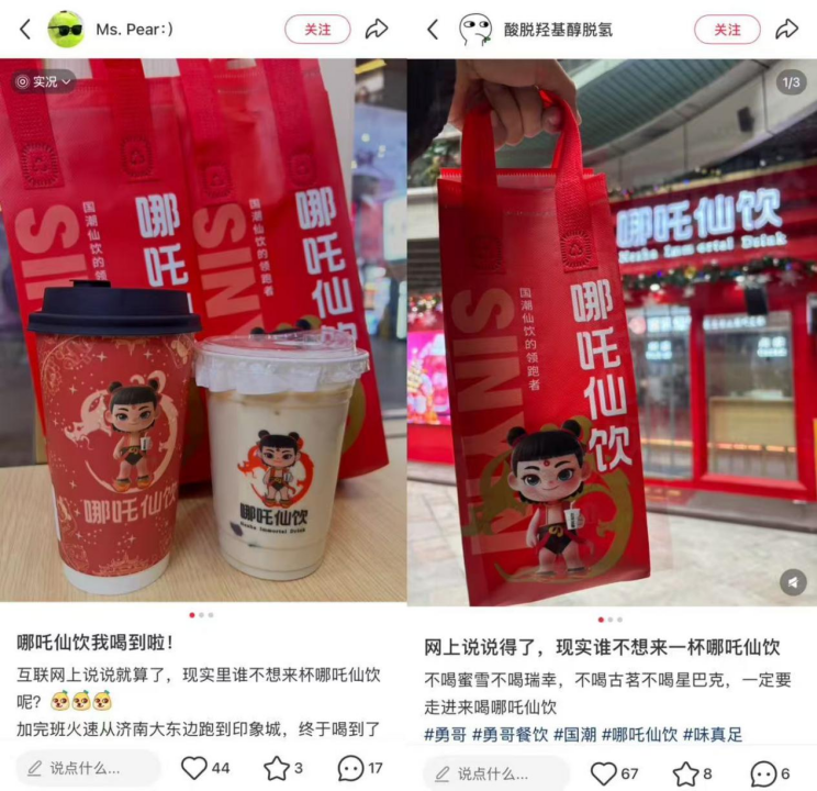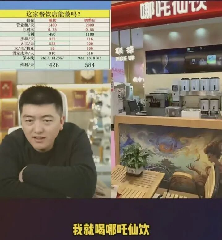 《哪吒2》爆火后,“哪吒仙饮”横空出世。本来想加盟蜜雪冰城的兄弟,被快招截胡,砸了二十多万开店,打出口号“不喝蜜雪不喝瑞幸,只喝哪吒仙饮”。