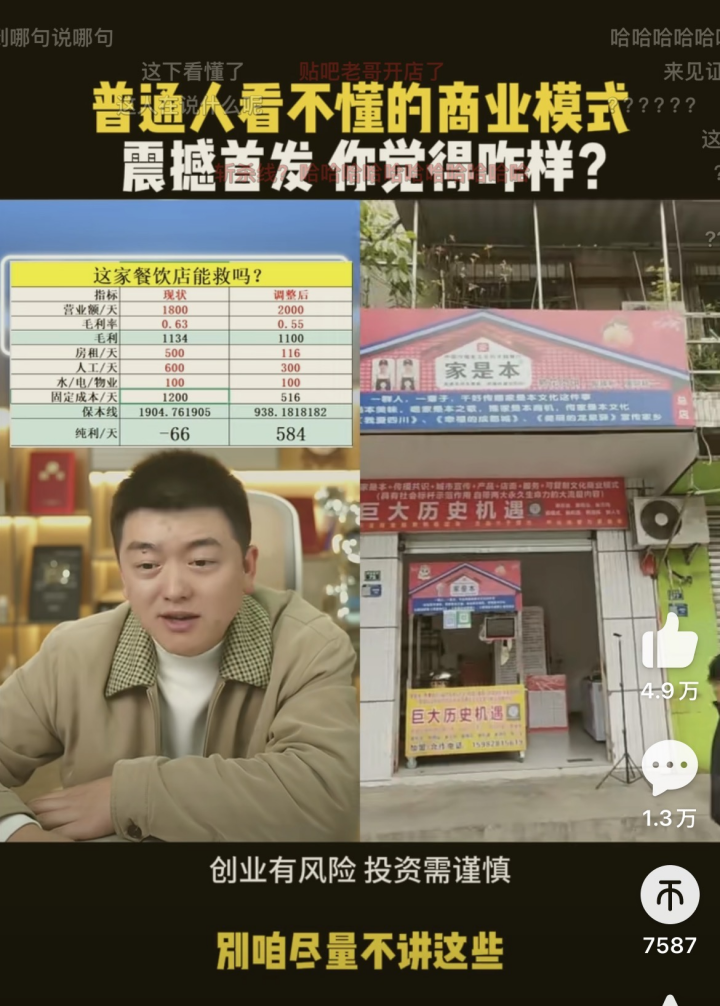 在老板的预想中,“家是本”比网红更有社会价值,比普通餐饮店更有流量,各地餐饮创业者理应抢着合作,连央视都要上赶着来采访他。