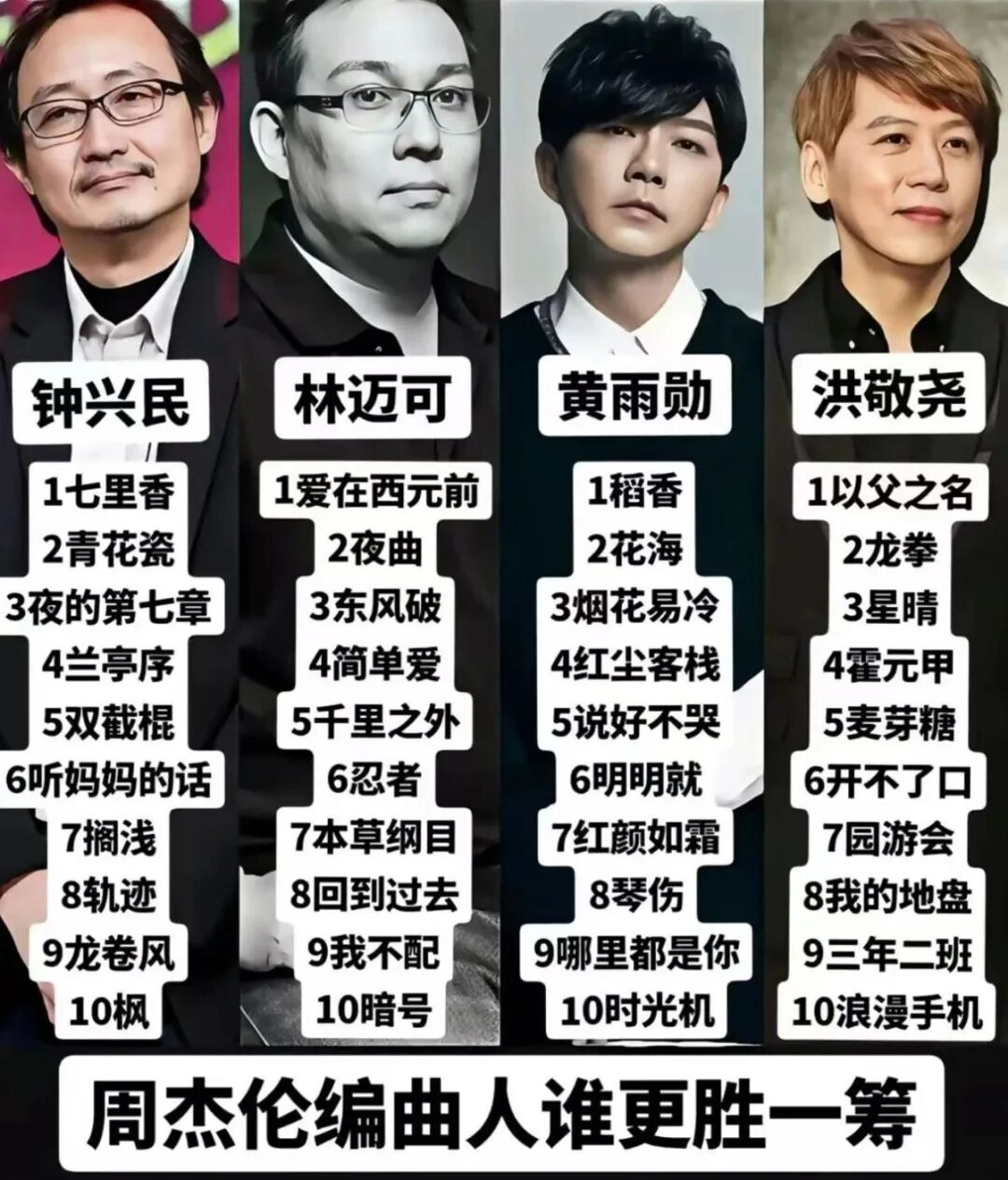 《12新作》发行当年,公开评价里已经出现了“创作模式化,像是早已输入好的方程式”的说法;而这张专辑的12首歌里,黄雨勋编曲占了7首,林迈可3首,周杰伦自己2首。这个节点很像一个拐弯:还没彻底失手,但某种“公式感”已经开始被明说了。此后黄雨勋的占比一路攀升:《哎呦,不错哦》12首里他编了8首,《床边故事》10首里8首,到《最伟大的作品》更夸张,12首里黄雨勋包了10首。黄雨勋当然是一位成熟的制作人,但当年那个先锋的周杰伦,不会只跟一个编曲人绑定。