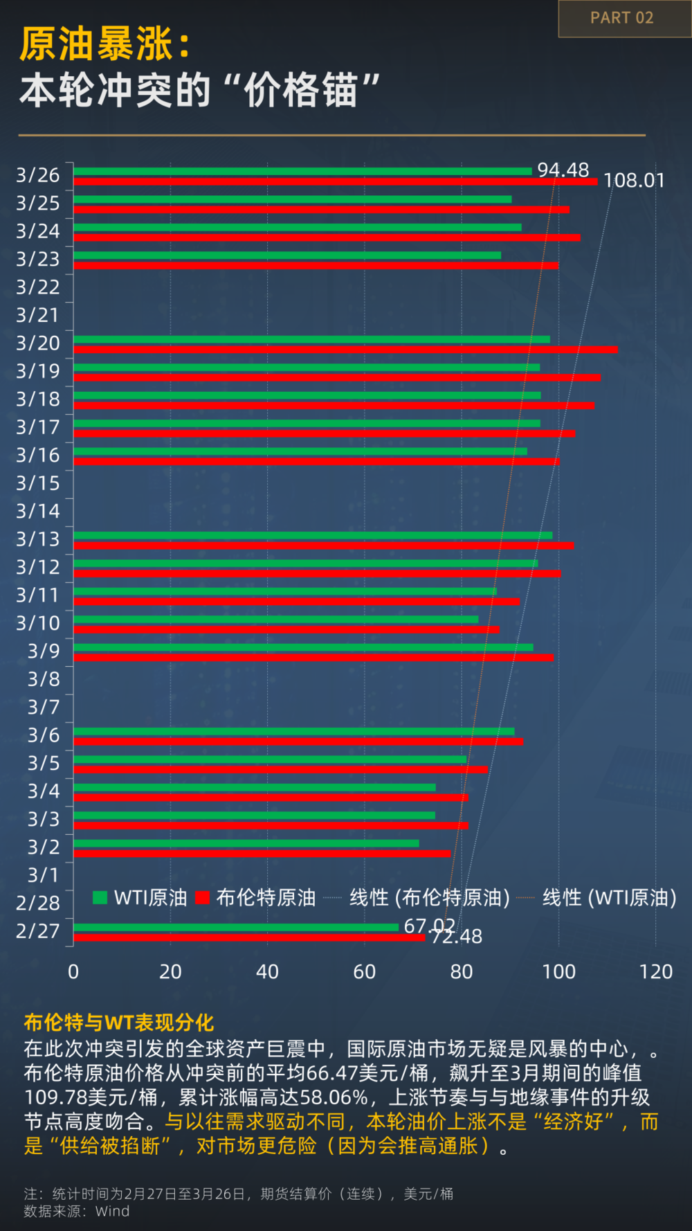 作为本轮冲突的核心变量,原油价格成为全球资产的“定价锚”。