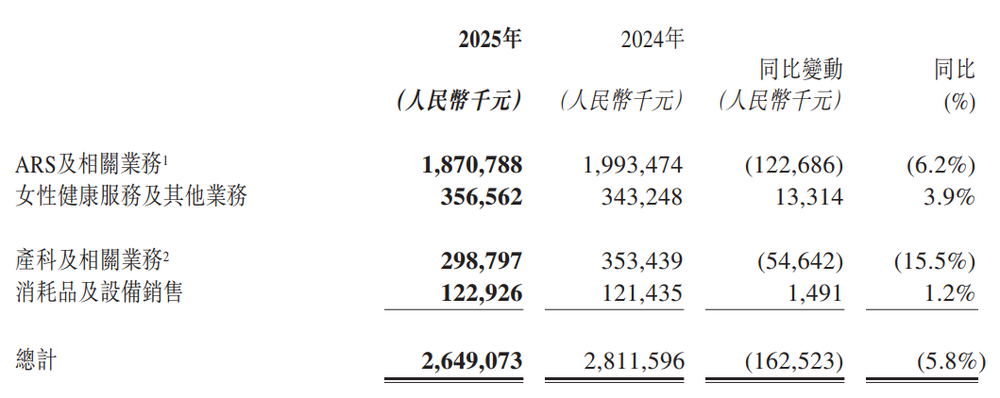 1、ARS(辅助生殖服务,Assisted Reproductive Services)相关收益减少约人民币1.227亿元;2、产科相关业务收益减少约人民币5460万元。