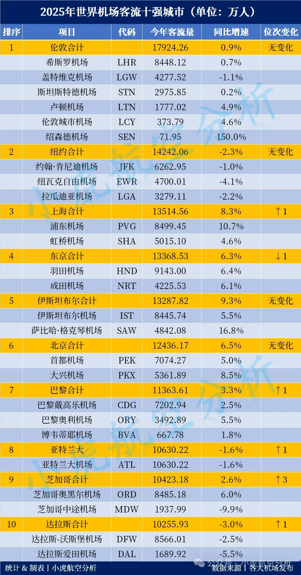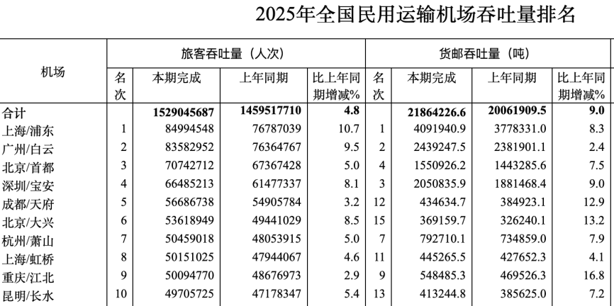 最先受益的无疑是上海等门户城市。2025年,上海机场(虹桥+浦东)客流量合计已经超越东京位居全球第三,和纽约差距不大了。