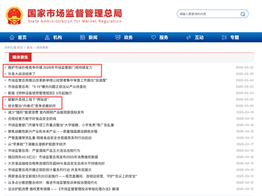 单纯看市场监督管理总局的媒体聚焦栏目,关于价格文章的转载非常多,隔三岔五就会出现一两篇。