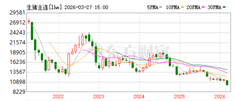 截至3月27日,大交所生猪主连价格跌破10000元,收盘报9965。