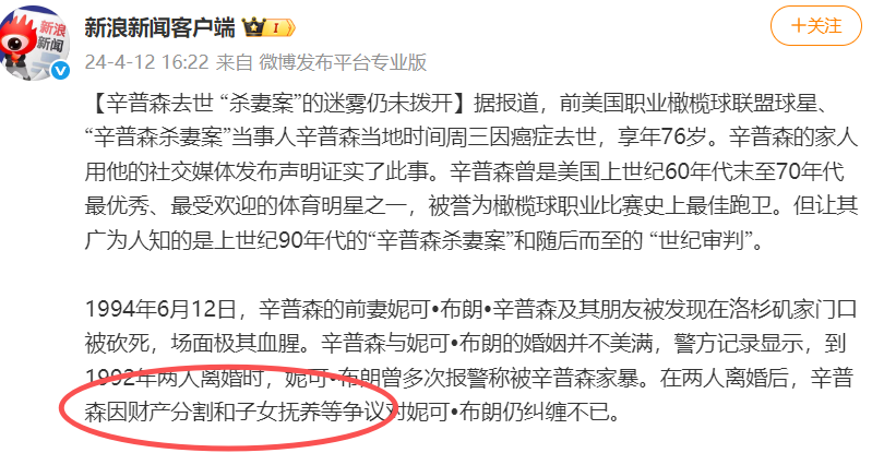 后来我逐渐了解到,原来辛普森是那个时代最知名的橄榄球运动员,身价亿万,他的妻子和他离婚,是会涉及千万美元财产分割的,资料显示,辛普森和他的妻子因为离婚财产分割存在纠纷。案卷也佐证了这一点,辛普森的妻子原本是餐厅服务员出身,收入应该不高,但相关案卷中,她开着豪车住着豪宅,甚至能把法拉利跑车借给别人开,还交上了新的年轻男友。