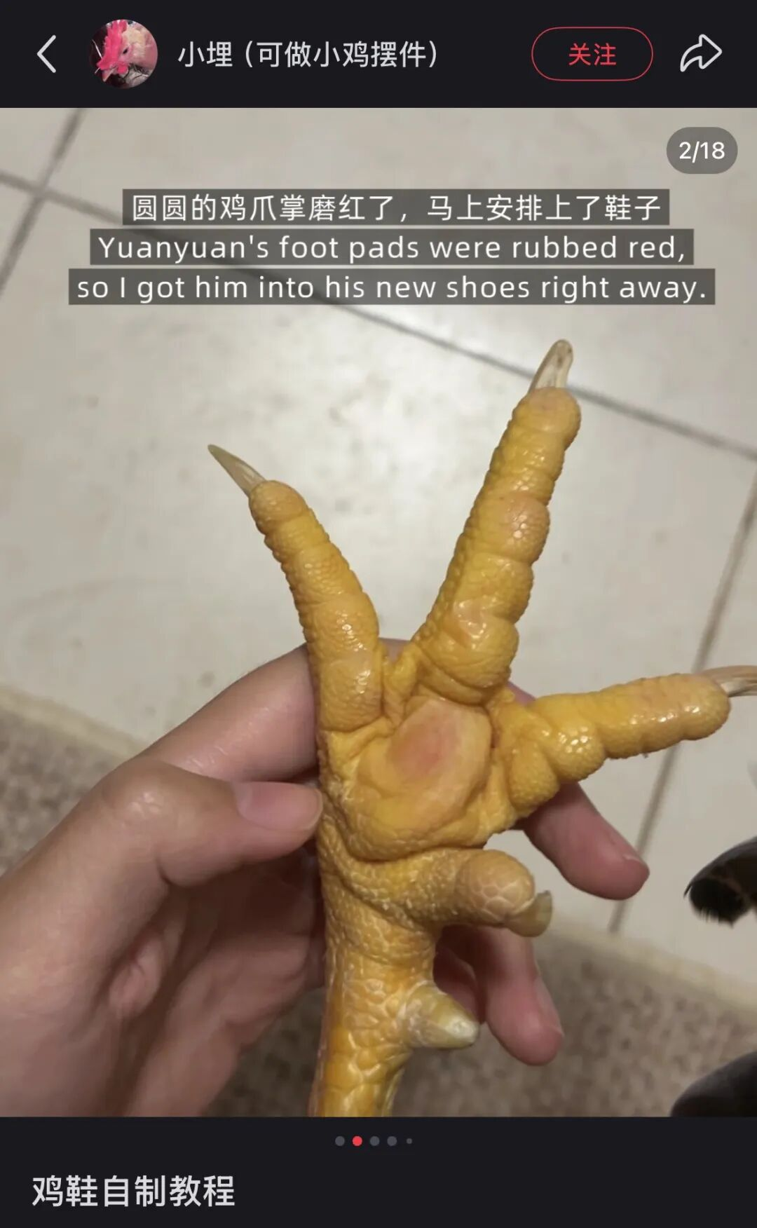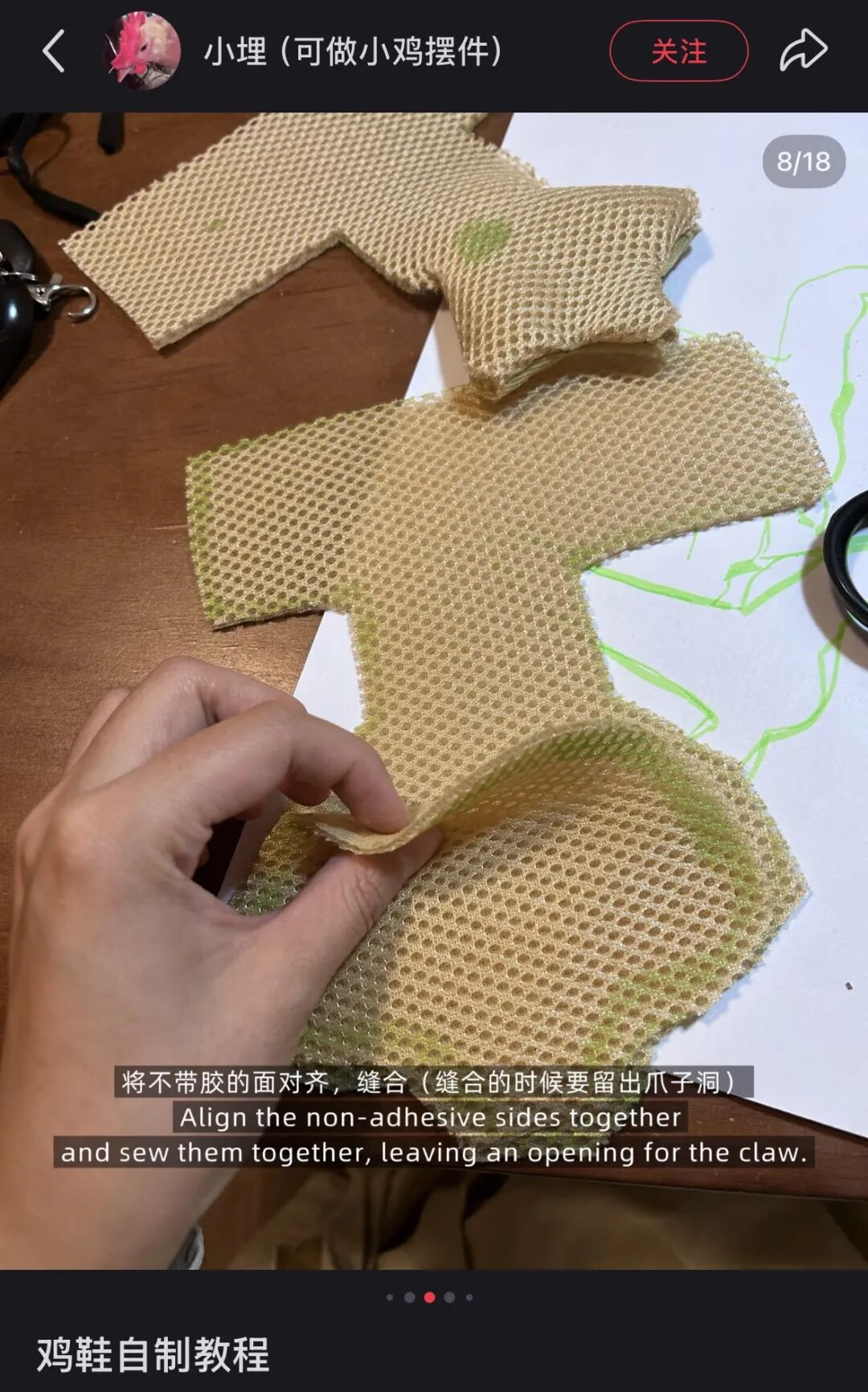 热心养鸡网友用18张图详细分享了鸡鞋制作教程:先在白纸上获取模特爪印,沿轮廓剪下,用兼顾透气和防滑的点胶网眼布缝制,配上按扣和魔术贴,方便小鸡穿脱。