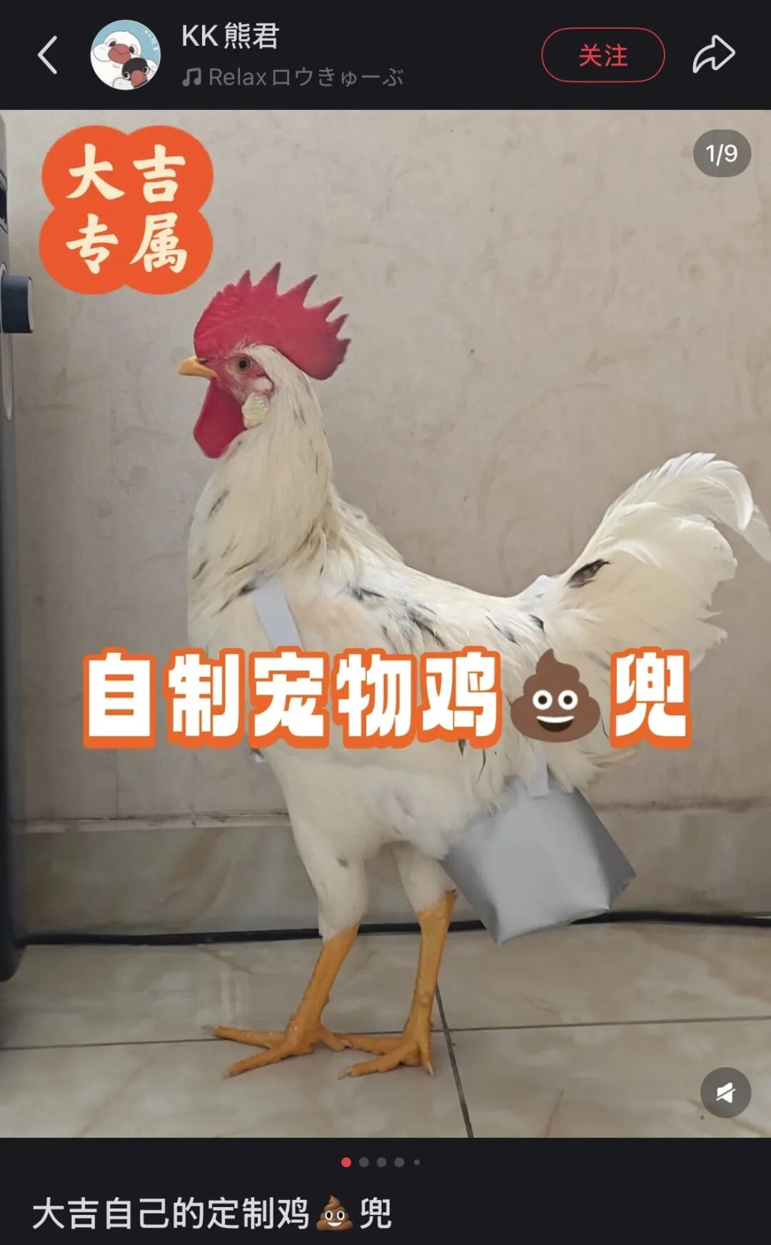众所周知,鸡不像小猫一样会用猫砂,也不像狗一样可以忍到出门再拉。鸡随时随地都有可能排泄,怎么办呢?养鸡人灵机一动,发明出了鸡屎兜子。
