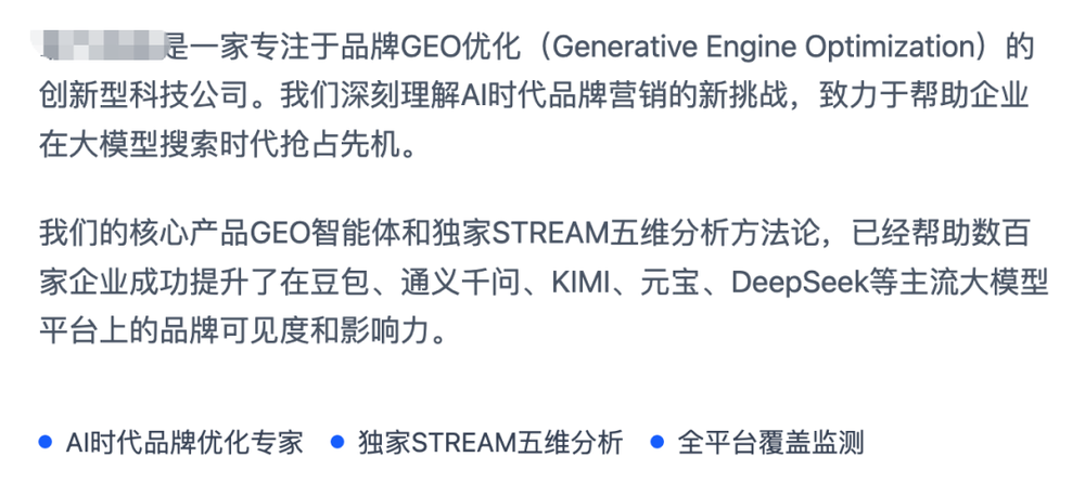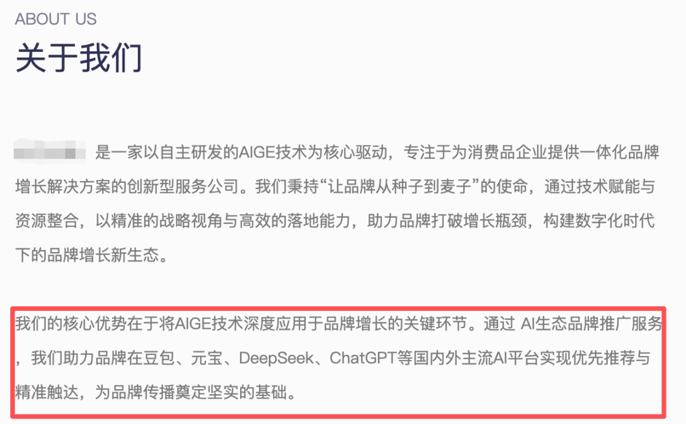 财联社记者还发现,目前有不少相关服务商主营类似业务,这些服务商对外兜售的卖点,已不只是品牌曝光,而是通过内容投喂、媒体铺设、多平台信号强化等方式,让企业信息在主流AI平台生成的答案中获得优先展示。