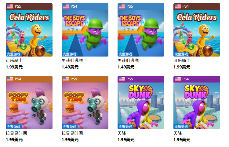 但如果只靠AI和换皮,其实两年要做700个游戏也有难度,这家公司还给每个游戏分别上架了PS4/PS5两个版本,不仅如此,不同区域也能搞分身,同样一款游戏,Nostra Games依次上架了美国、日本、法国等不同地区的版本,都能算作独立的游戏。