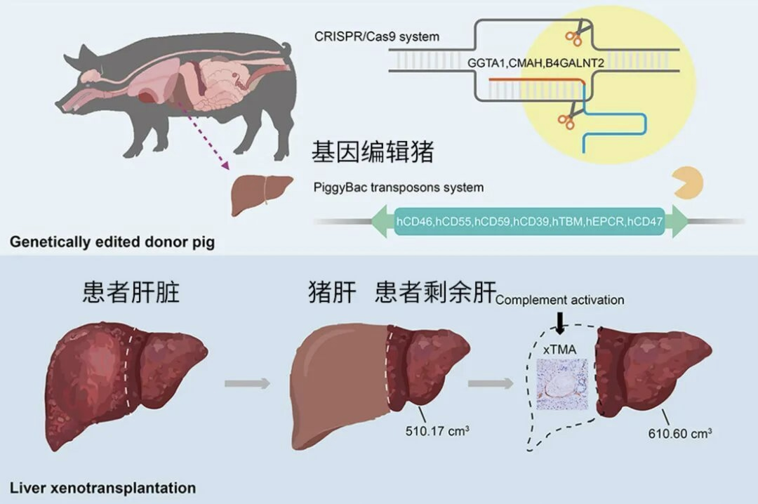把猪的肝脏经过多基因修改后移植,成功绕过了极度凶险的急性排斥反应,让猪肝能稳定替代工作。