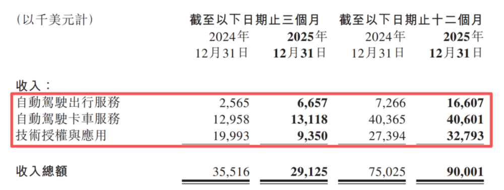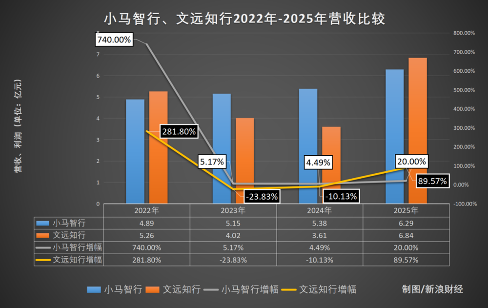 小马智行发布2025年未经审计财报,2025年公司总营收6.29亿元,同比增长20%。文远知行的全年营收达6.9亿元,同比增长90%。