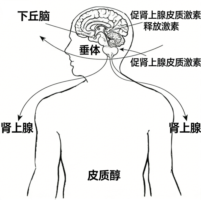 下丘脑-垂体-肾上腺轴(HPA轴)调控示意图
