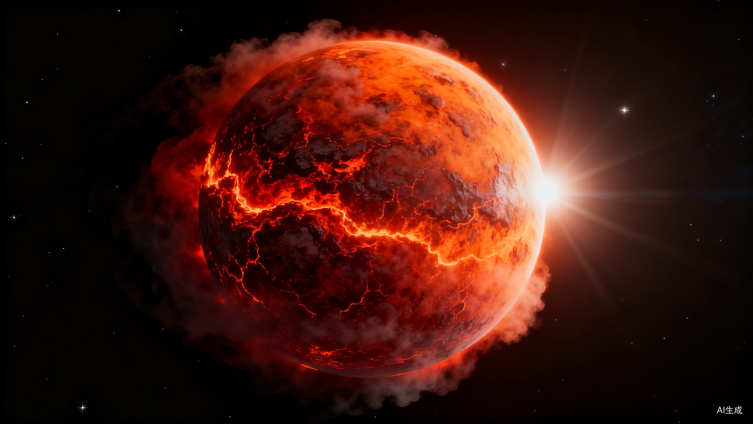 如此“贴脸”的轨道,让TOI-561b始终以同一面朝向恒星,形成了“永昼面”和“永夜面”,这种现象被称为“潮汐锁定”。也正因如此,TOI-561b表面承受的辐射强度高达地球的数千倍,其永昼面温度远超普通岩石的熔点,成了名副其实的“熔岩世界”。
