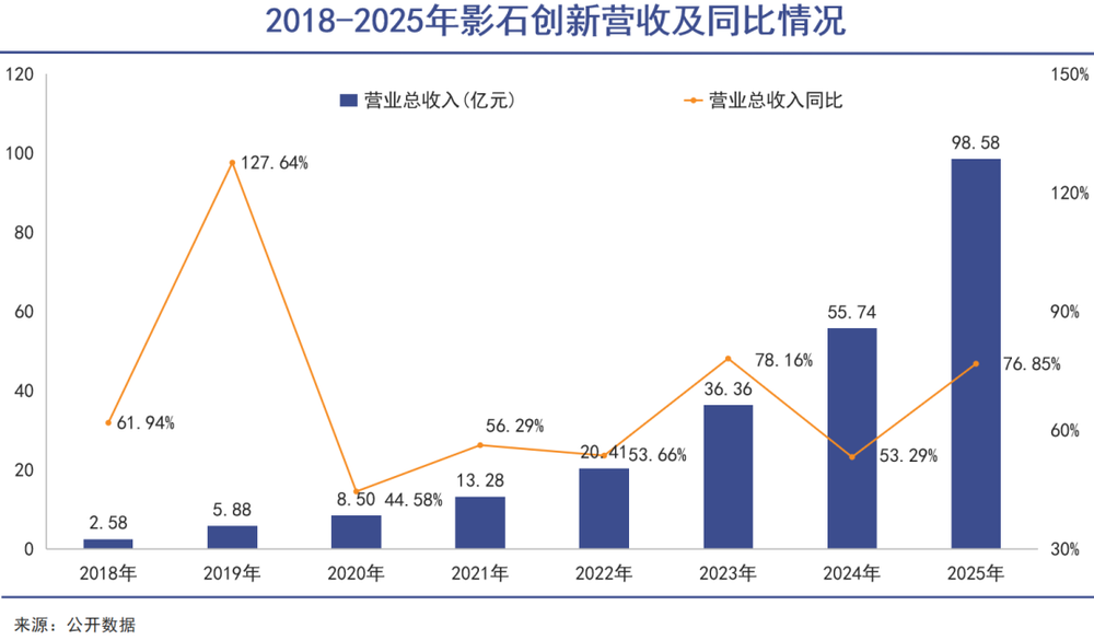 去年影石实现营收98.58亿元,同比增长76.85%,逼近百亿大关,已经展现出足够迅猛的增长速度。在全景相机领域,影石根基深厚,已经是该领域无可争议的霸主。IDC数据显示,2025年影石全景相机产品出货量同比增长接近60%,以全景相机市场超过65%的出货量份额大幅领先。