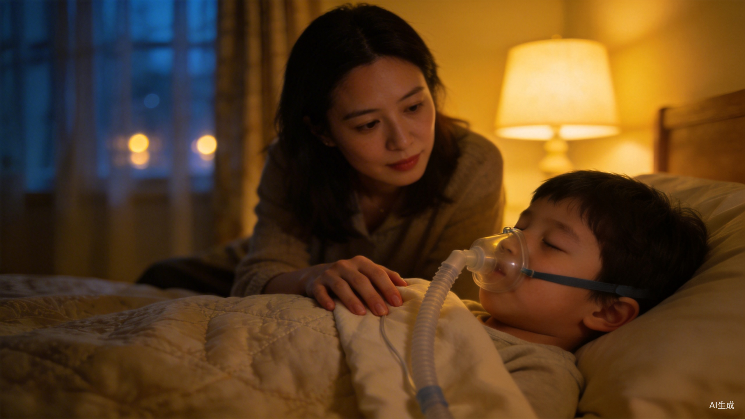 这解释了他夜间惊醒、哭闹的根源:他的身体在睡眠中,正在为每一口空气而挣扎。