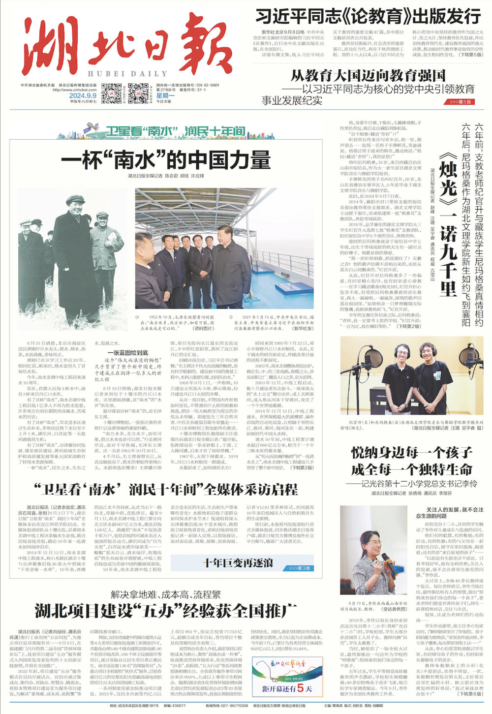 □2024年9月9日,《湖北日报》在头版头条推出南水北调十周年开篇报道《一杯“南水”的中国力量》